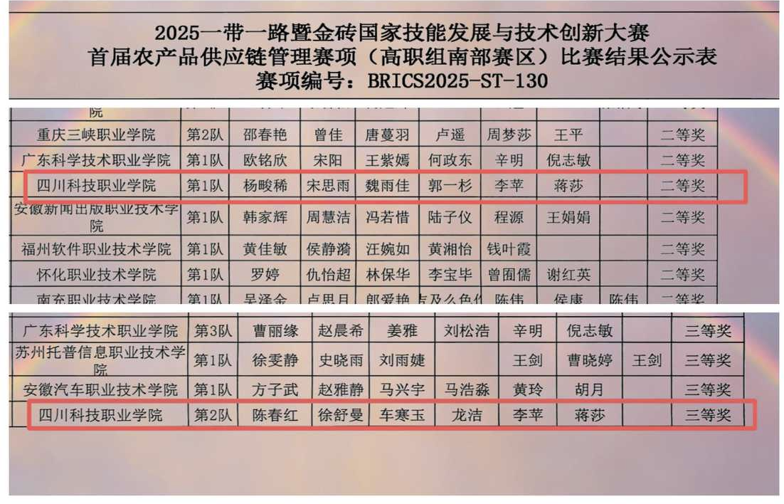 再传捷报!四川科技职业学院数字商务学院在2025一带一路暨金砖国家技能大赛农产品供应链管理赛项中再获佳绩