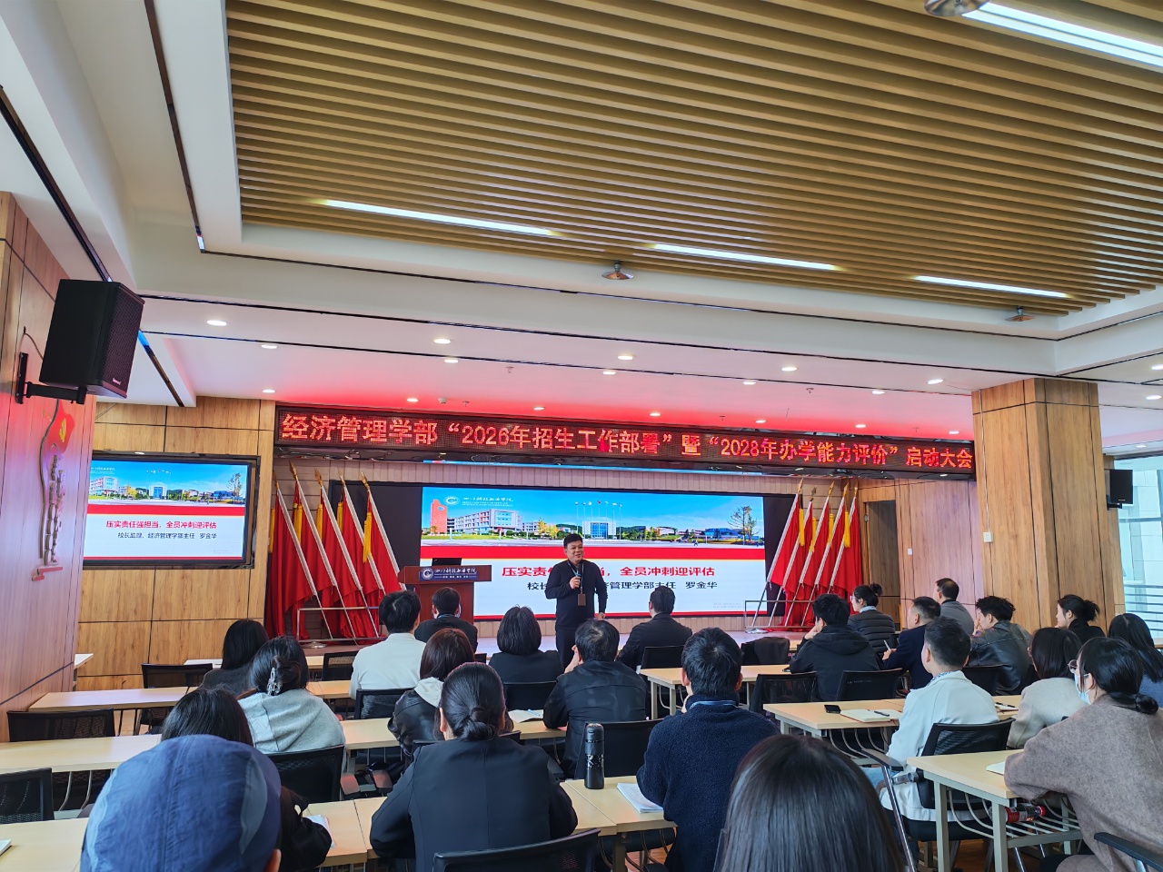 3月11日下午14时,经济管理学部召开2026年招生工作部署大会暨2028年办学能力评估启动大会在图书馆九楼延安厅顺利召开,学部全体教职工参加会议。