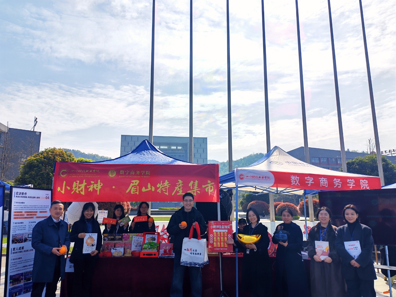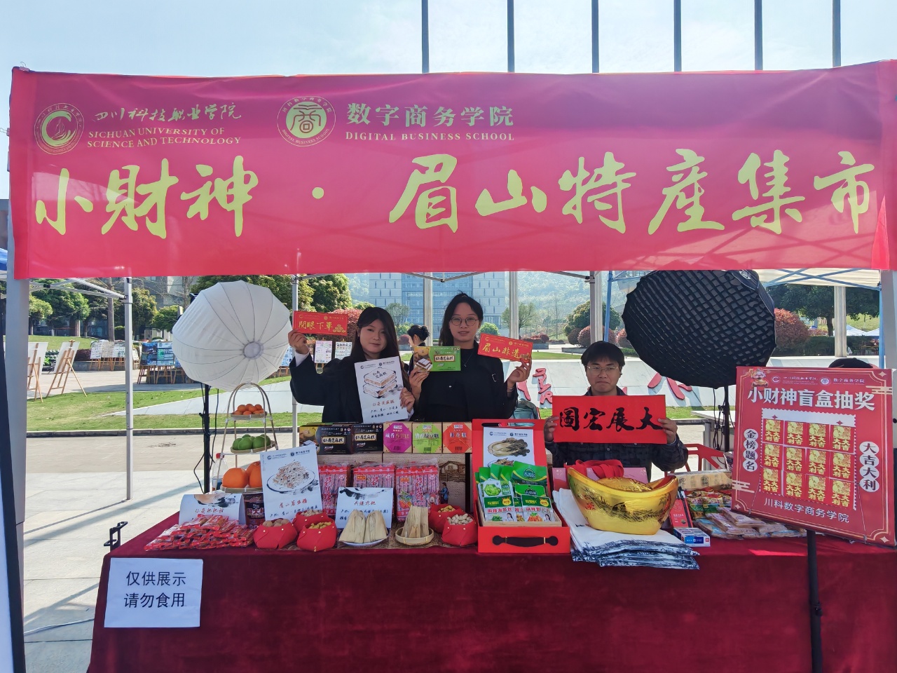 学院打造的“小财神”眉山特产线上线下联动营销场景备受追捧,线下集市由学生团队全流程实操特产运营,红包墙、抽奖等互动点燃现场氛围;线上直播间更是重磅亮相,由2025年四川省职业院校技能大赛金奖团队领衔坐镇,专业演示直播电商全链路技能,将产品卖点提炼、直播话术设计、流量转化等专业能力展现得淋漓尽致,让考生直观感受“线下逛、线上买”的数字商务融合魅力。